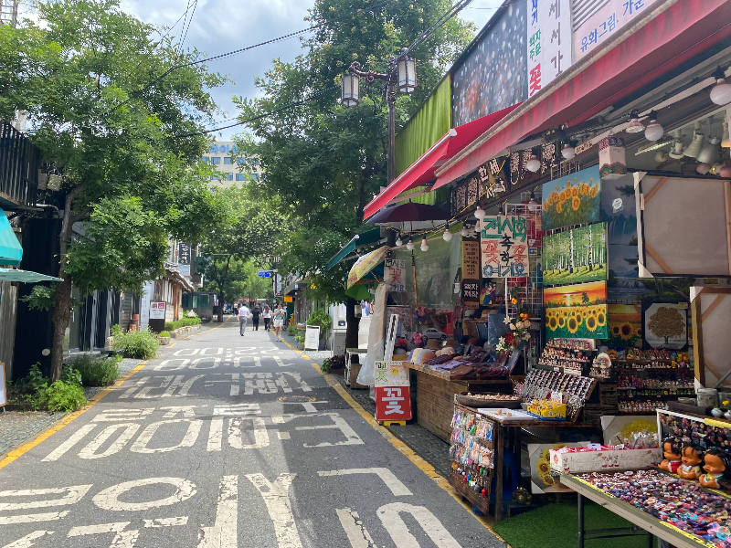 인사동은 조선시대부터 서울의 심장부에 위치한 곳이라 오랜 역사를 자랑하는 곳이기도 하죠. 일제 강점기 시절에는 일본인에게 주로 고미술품 거래를 하는 시장이 만들어졌던 곳이고, 1970년대에 이르러 화랑, 필방, 표구사 등이 들어서면서 근현대의 역사를 품고 있는 곳이라 나이가 지긋한 어르신들에게는 추억이 스며있는 곳이기도 하지요. 이런 이유 때문에 한국 문화에 관심이 많은 외국인 관광객들의 필수 관광코스가 될 정도로 인기가 많은 장소가 되었어요. 이렇게 사람들이 많이 몰리다 보니 우리 전통문화와 상관이 없는 업종이 진출하면서 과거의 모습을 잃어가는 게 조금 안타깝더라고요.