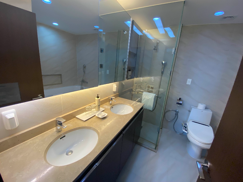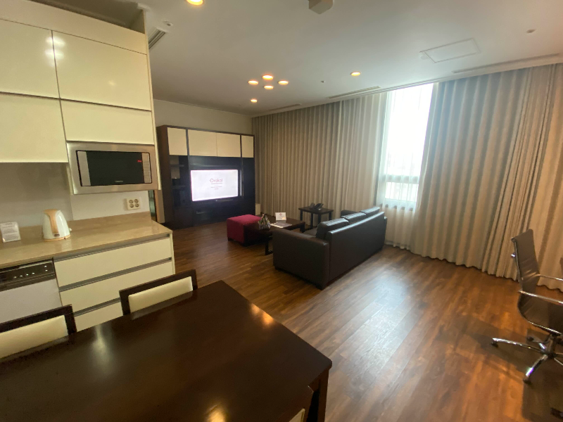 1층에 호텔 로비가 있는데, 엘리베이터가 2군데가 있어요. 리셉션 바로 옆에 붙어있는 엘리베이트는 호텔 이용자를 위해 1~15층까지 운행을 하고 있고, 리셉션의 반대편에 위치한 엘리베이터는 15층을 넘는 층만 운행을 했는데, 아무래도 레지던스 호텔이다 보니 장기 입주해 있는 이용자를 위해 분리시켜 둔 것 같아요. 한국에 거주하는 외국인 주재원들을 위한 공간으로 사용되는 게 아닌가 짐작해 봅니다. 로비에 들어서면 외국인들이 실제로 많이 이용하고 있었어요. 그래서 외국에 온 것 같은 느낌이 들기도 했어요.