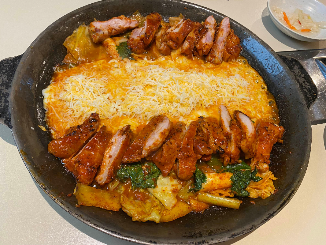 사실 쉐프조에서 딸기케이크를 사러 갔는데, 미리 예약주문한 분들의 케이크만 있어서 케이크를 사는 것에 실패했지요. 치즈 닭갈비를 먹었습니다. 이름이 느루집이었는데, 치즈 닭갈비라 매운맛을 잡아주었습니다. 냉면 추가했지요.